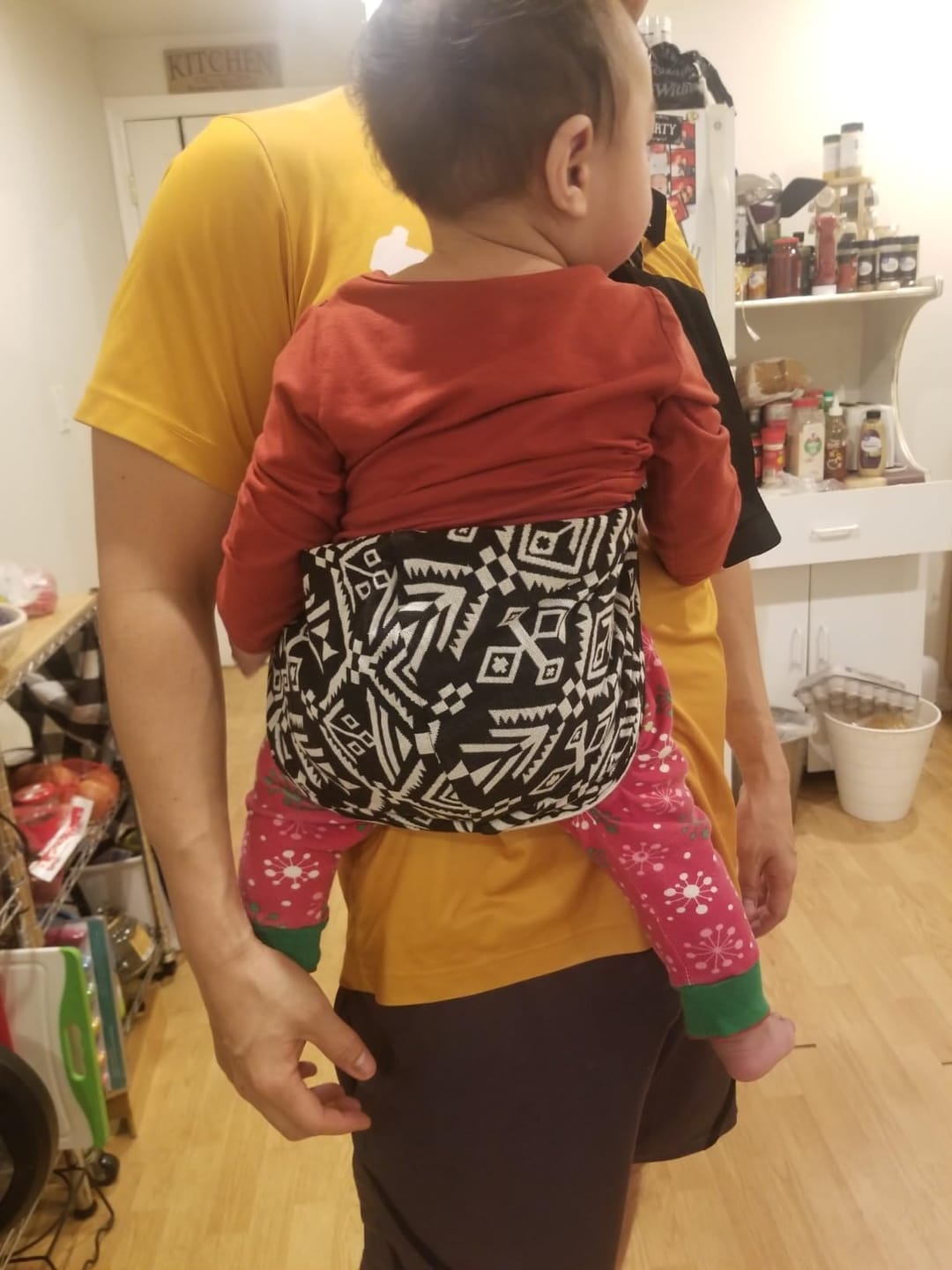 Lorsque votre bébé veut être porté mais que la vie ne s'arrête pas, cette écharpe intervient.